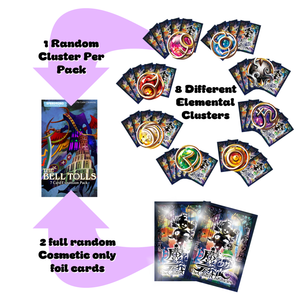 In regards to product design, The Caster Chronicles card game will no longer be a traditional TCG. Instead we are moving towards a more Expandable Card Game like route. This method has proven to be very successful with other revived card games in the past, such as Android Netrunner, and we believe it to be the correct direction forward for the game. This direction will allow us to put a greater emphasis on gameplay and its far more affordable price point and casual entry will allow us to expand the game to all new audiences far easier than if it was still a Trading Card Game. The main products for The Caster Chronicles card game will be Duel Decks and Expansion Packs. These will be new products featuring new mixes of cards and NOT straight reprints of the old products. Duel Decks are two preconstructed decks in one product. This is meant to be an easy way for two players to enjoy playing The Caster Chronicles right away. Expansion Packs will be similar to booster packs. However, these packs will be more like “Jumpstart”. Each Set will have 8 possible clusters of 5 cards to collect. Each cluster will be one single element and always the same. There will also be foil cards in each pack that are randomized and collectable versions of the cards that are easily obtainable in non-foil forms. We understand that there is a large group of fans that enjoyed collecting the Caster Cards in the game instead of focusing on the play of the game. We do not plan to let you down either. We think you will enjoy the expansion pack opening experience and collecting all the variant editions of the Caster Cards.